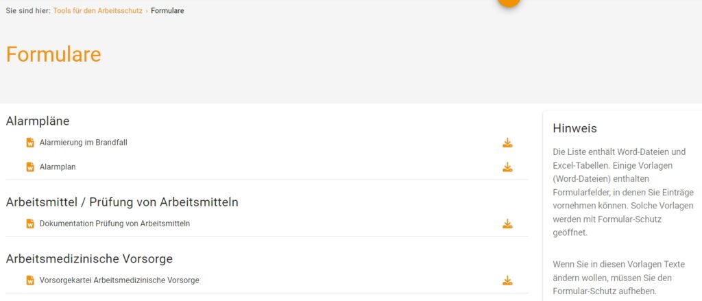 Unter Formulare erhalten Sie weitere Vorlagen für den alltäglichen Gebrauch, welche Sie herunterladen und bearbeiten können. Sie laden diese herunter, indem Sie auf das gewünschte Formular klicken. Dieses öffnet sich daraufhin im Word-Format zum herunterladen.