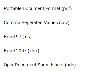 Sie können im nächsten Schritt auswählen, in welchem Format Sie ihre Daten exportieren möchten. Klicken Sie auf das Format, welches Sie haben möchten und die entsprechende Datei wird lokal heruntergeladen.