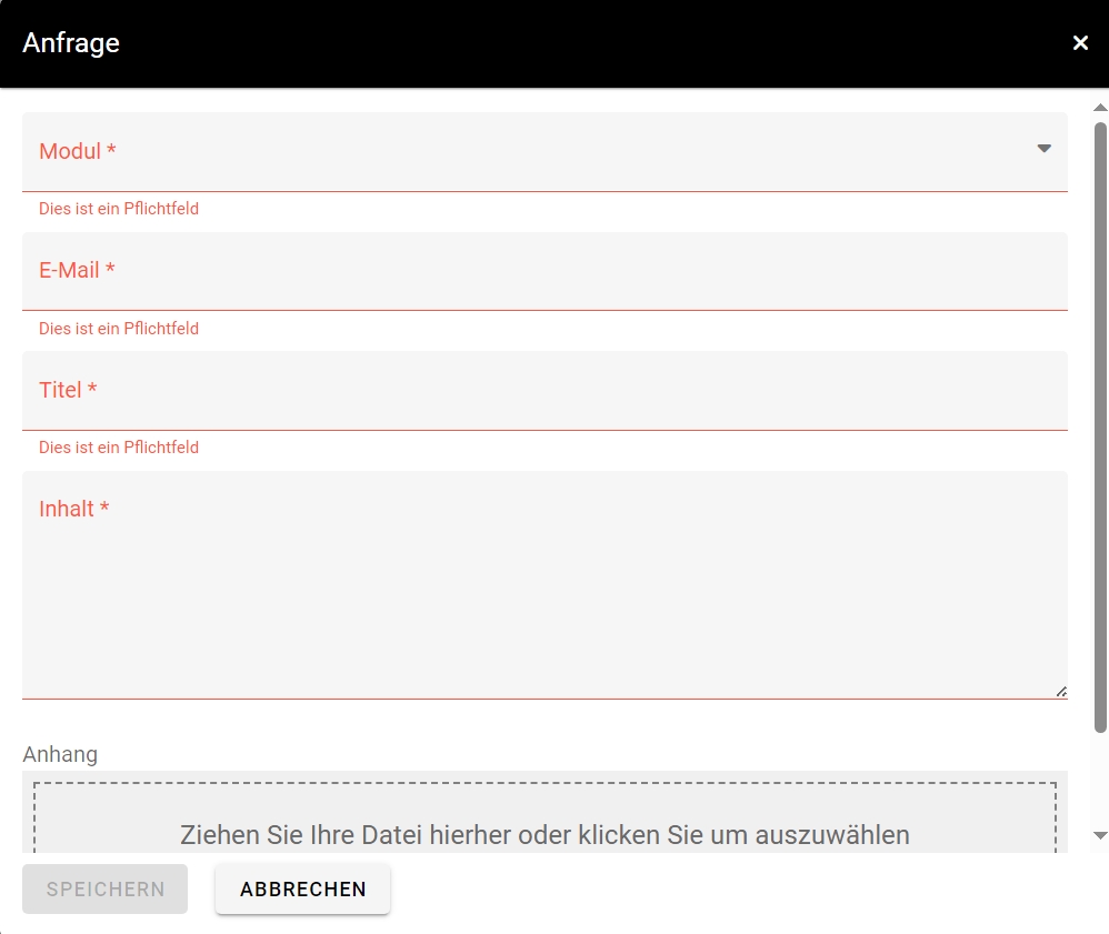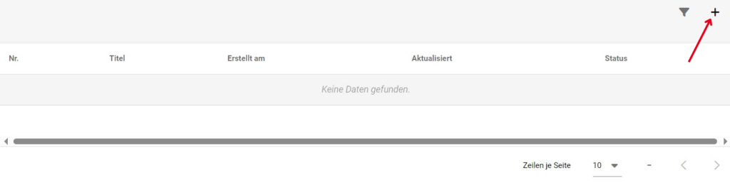 Wenn Sie ein Problem haben und unser Benutzerhandbuch Ihnen nicht weiterhelfen kann, scheuen Sie sich nicht davor mit uns in Kontakt zu treten. Sie können über den Bereich Support eine Anfrage an unsere Mitarbeiter stellen. Klicken Sie dafür auf das + im oberen rechten Bereich.