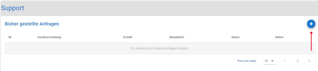 Über diesen Reiter können Sie sich direkt ein Ticket für technische Probleme ausstellen lassen. Dafür klicken Sie auf das + am oberen rechten Rand der Seite und beschreiben dann Ihr Problem. Sie sehen ebenfalls auf der Seite bereits vergangene Anfragen an unser Support-System.