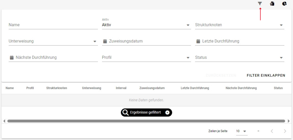 Die Filteroptionen können Sie aus- und einklappen, indem Sie auf das Filter-Symbol am oberen rechten Rand klicken.