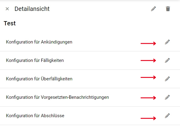 Es werden alle Eskalationsstufen angezeigt. Diese können Sie jeweils bearbeiten und aktivieren oder deaktivieren. Dafür klicken Sie auf den Stift.