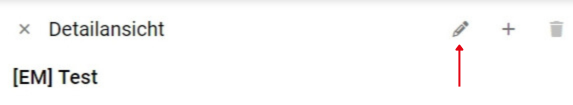 Sie können ein Event in der Detailansicht bearbeiten. Klicken Sie dafür einfach auf das Stift-Symbol. Wenn Sie auf das Stift-Symbol klicken, können Sie den Namen, die Verantwortlichkeit und die Themen bearbeiten.