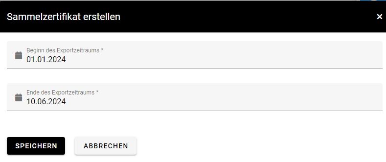 In dem nächsten Schritt können Sie den Zeitraum, für welchen das Zertifikat ausgestellt werden soll, definieren. Mit einem Klick auf Speichern schließt sich das Fenster und die Datei wird heruntergeladen.